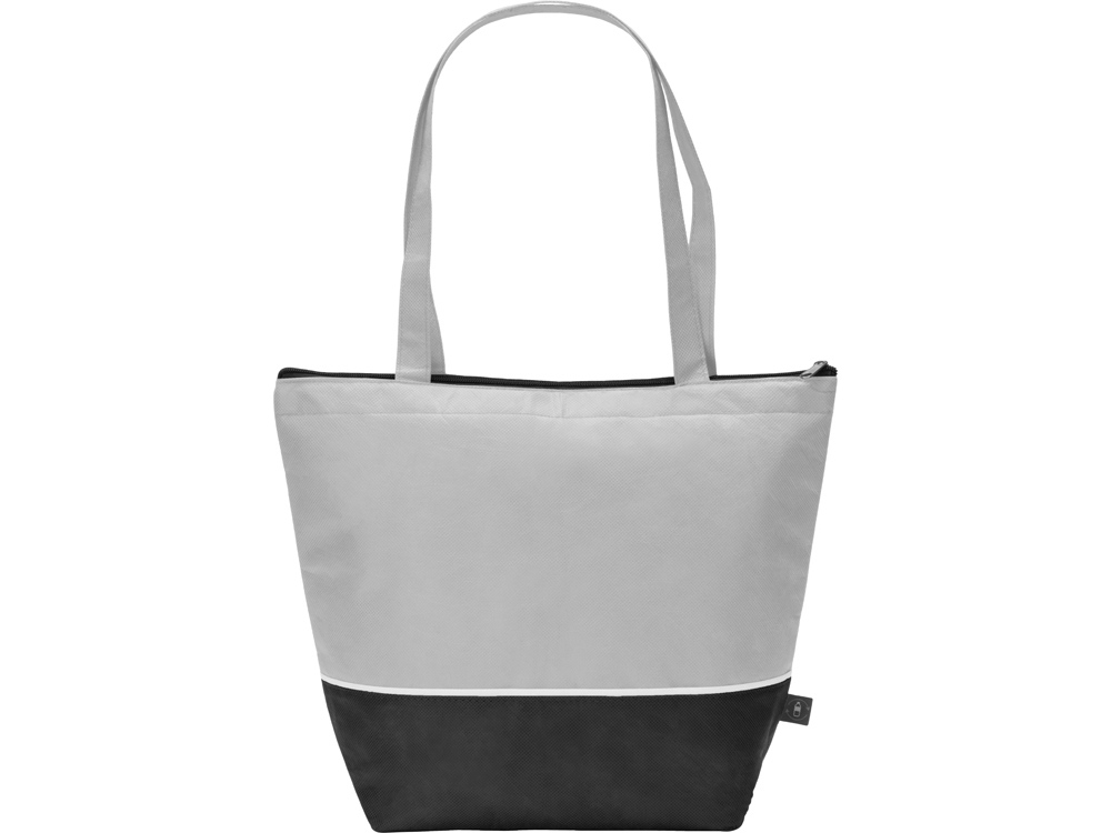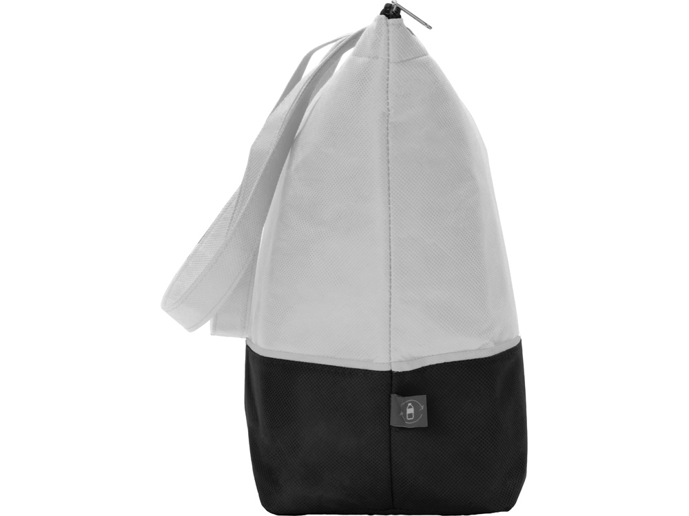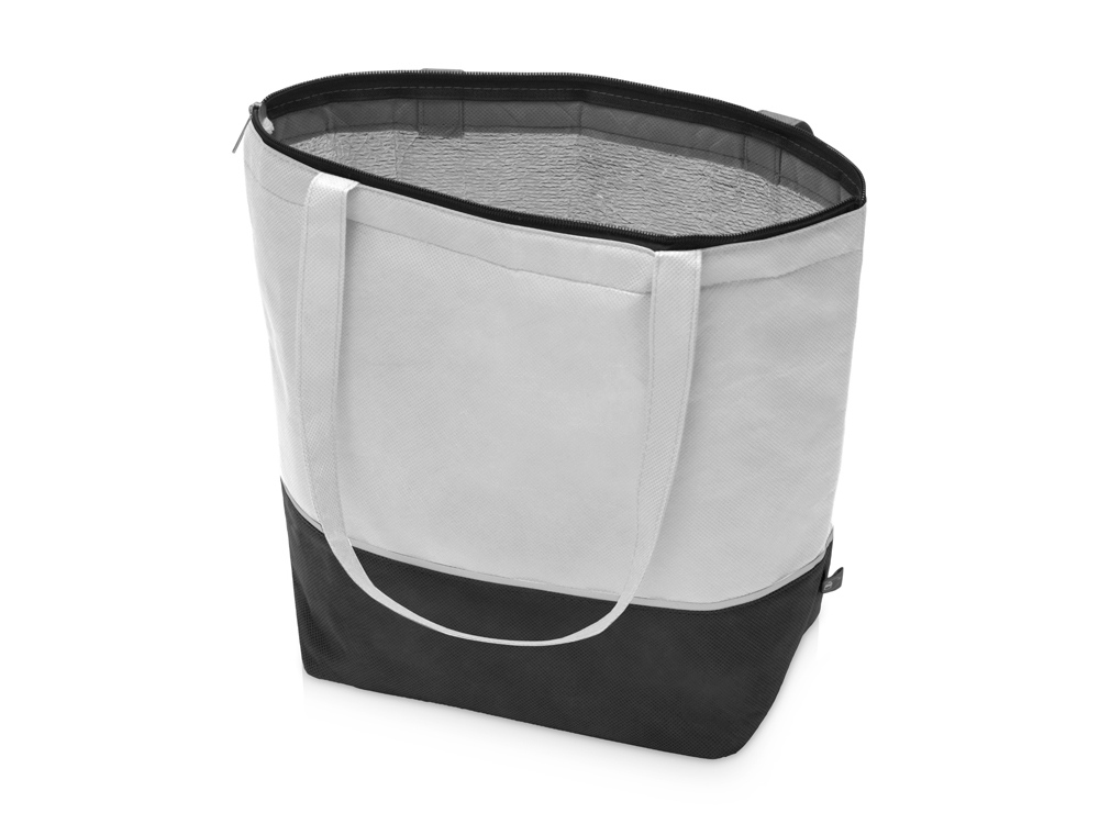 Вместительная сумка-холодильник из переработанного пластика. Удобные длинные ручки для ношения на плече. Застегивается на молнию. Термотрансфер (1 цвет (белые изделия)) на данный товар осуществляется бесплатно. Оплачивается только настройка оборудования в размере 5800 рублей на весь тираж.
