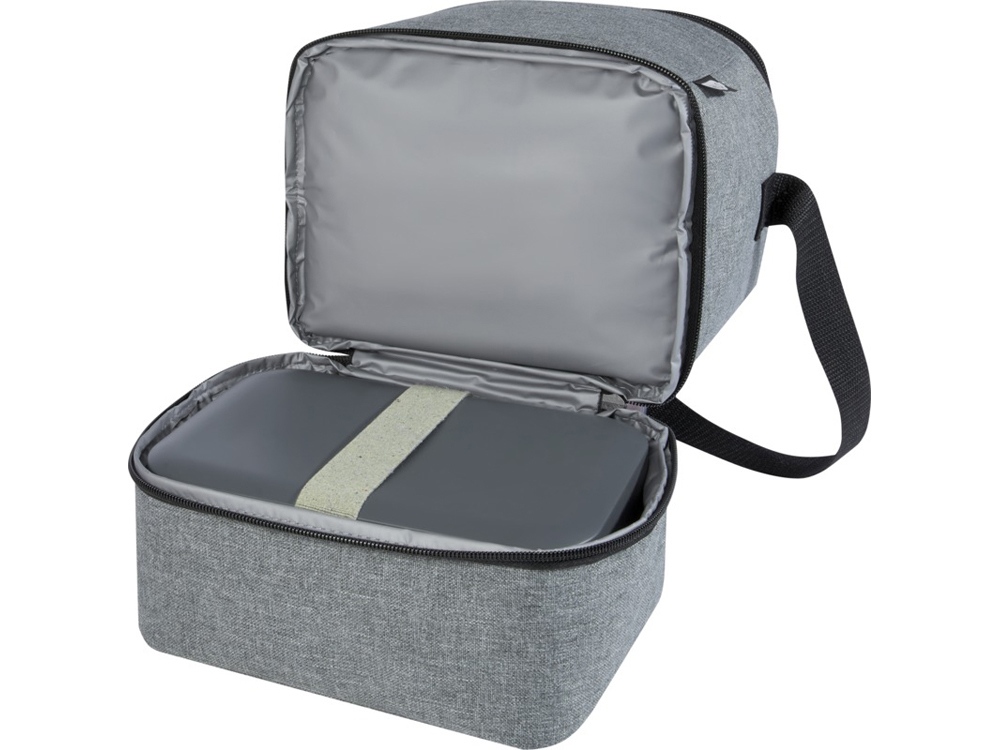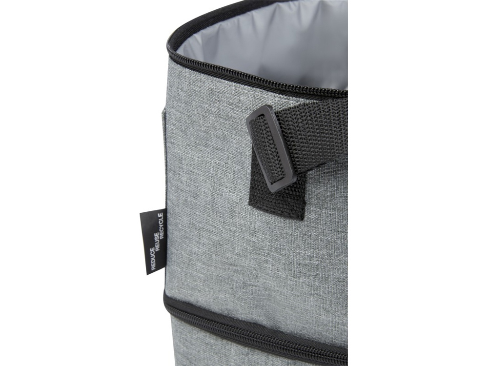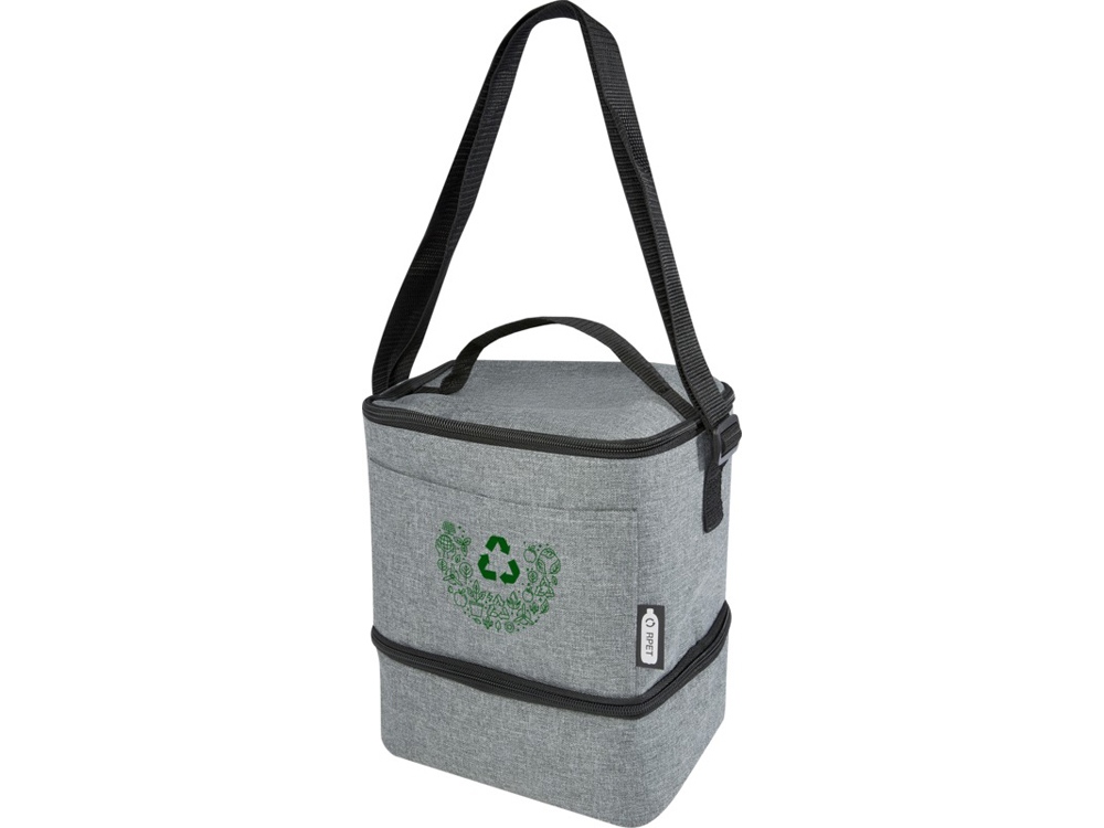 Сумка-холодильник Tundra выполнена из переработанного материала, в ней достаточно места для всех ваших продуктов, которые вы берете на обед. Имеет одно верхнее изолированное отделение на молнии и одно нижнее изолированное отделение на молнии. Нижнее отделение идеально подходит для бенто-бокса, а в переднем прорезном кармане удобно носить защитную маску и другие небольшие предметы. Подкладка и внешний слой сумки-холодильника PEVA изготовлены из переработанного РЕТ-пластика.
