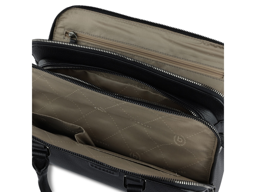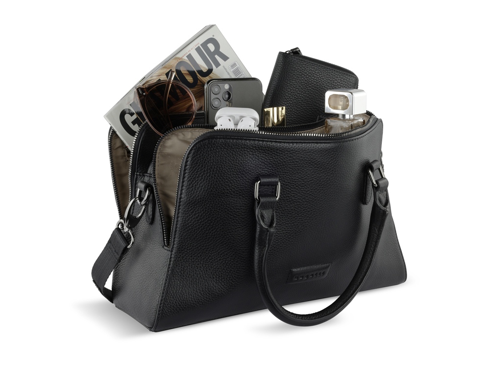 Функциональная организация: 3 отделения на молнии с карманом на молнии и 2 открытыми карманами, 2 ручки, съемный регулируемый плечевой ремень (до 130 см).