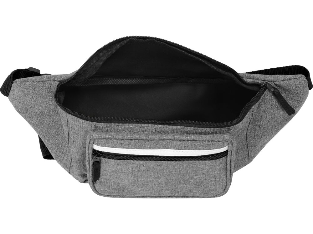Сумка на пояс из плотного полиэстера. Наружный карман и основное отделение на молнии. Широкий ремень для дополнительного удобства. Длина ремня на пояс 73 см, ширина 4 см. При полном раскрытии ремня объем сумки около 119 см. Термотрансфер (1 цвет (цветные изделия)) на данный товар осуществляется бесплатно. Оплачивается только настройка оборудования в размере 9200 рублей на весь тираж.