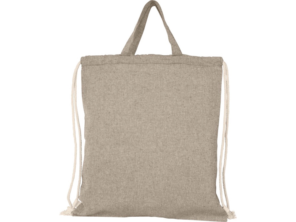 Рюкзак со шнурком Pheebs из 150 г/м² переработанного хлопка. Вторичный хлопок изготавливается из отходов, предназначенных для потребления, которые производятся текстильными фабриками в процессе резки. Подобные цвета смешиваются вместе, что означает, что дополнительная окраска не требуется. Большое основное отделение затягивается на хлопковый шнурок натурального цвета. Предназначен для ношения на плече или как рюкзак. Имеет две спадающие ручки высотой 14 см. Прочность до 5 кг. 150 г/м² переработанный хлопок. Трафаретная печать (1 цвет (цветные изделия)) на данный товар осуществляется бесплатно. Оплачивается только настройка оборудования в размере 8700 рублей на весь тираж.