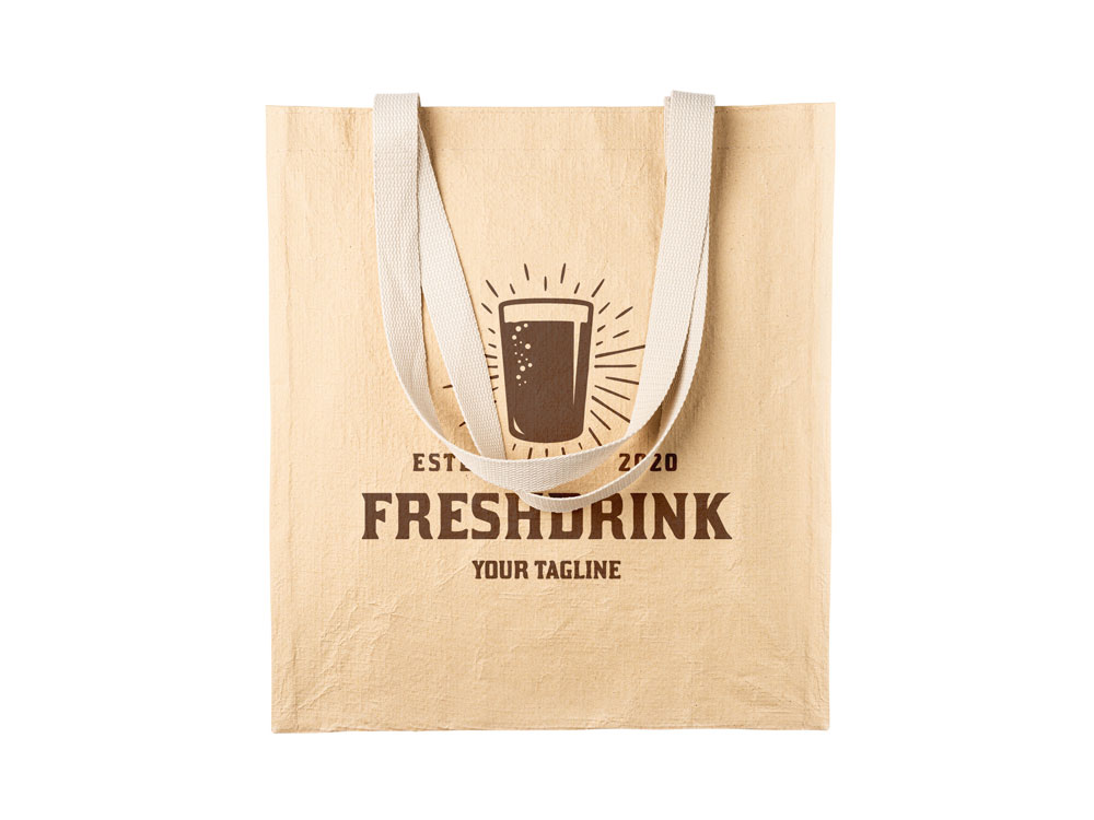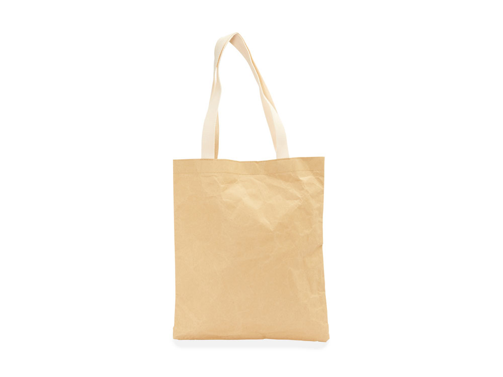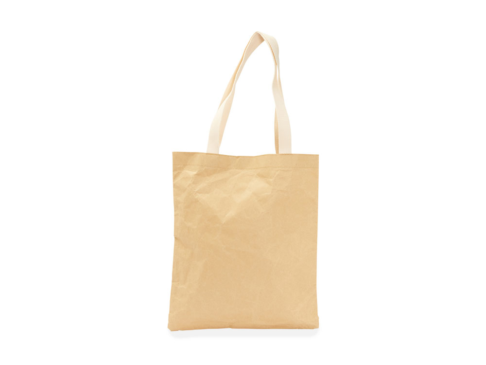 Сумка-тоут из крафт-бумаги с двумя хлопковыми ручками длиной 64 см. Выдерживает до 6-7 кг