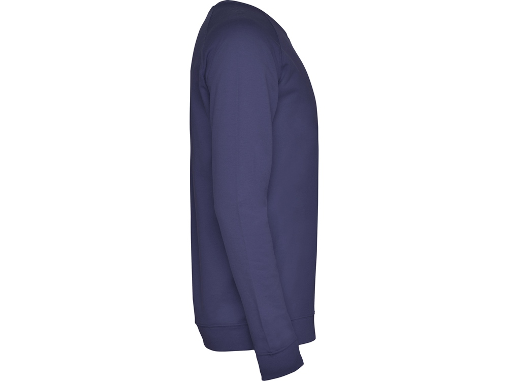 Свитшот с рукавом реглан из хлопкового футера без начеса. Манжеты по рукавами низу изделия из риба 1х1. Круглый вырез горловины дополнительно усилен тесьмой.