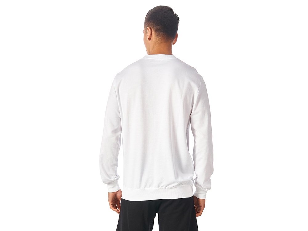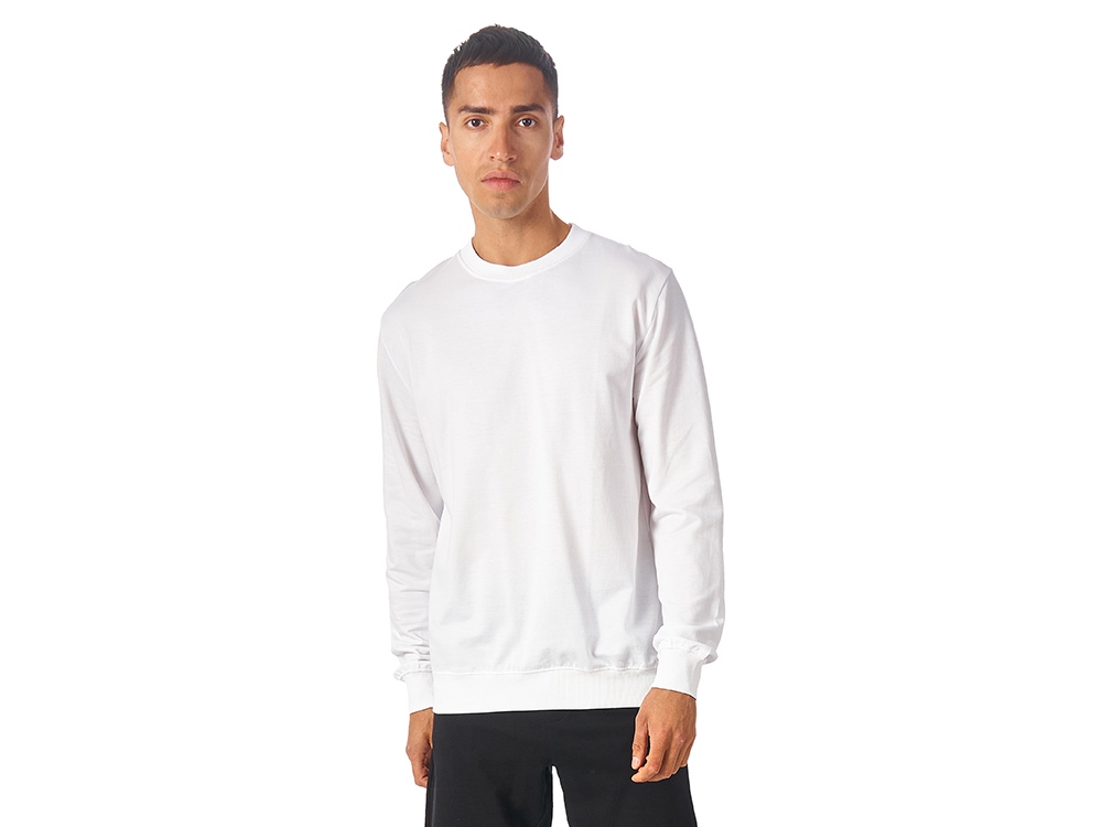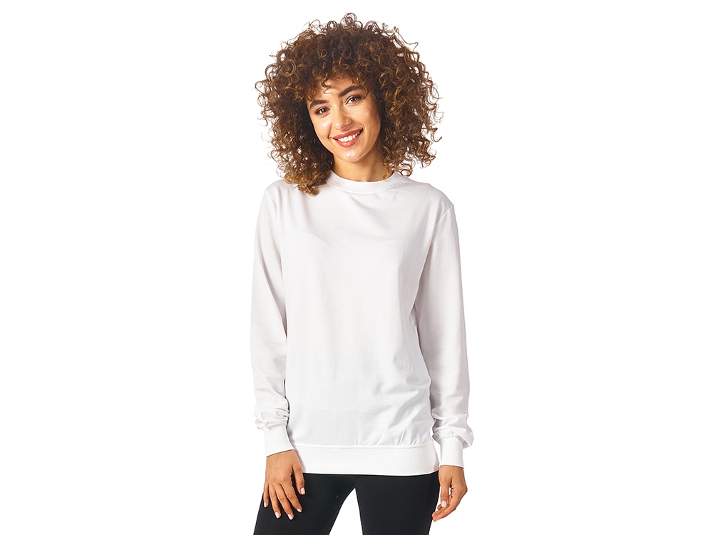 Свитшот выполнен из хлопкого френч терри с петельками на изнаночной стороне. В этой модели — комфортно и удобно, это базовый предмет гардероба, который станет прекрасным мерчем, ведь компактное переплетение полотна позволяет нанести изображение идеальным образом.
