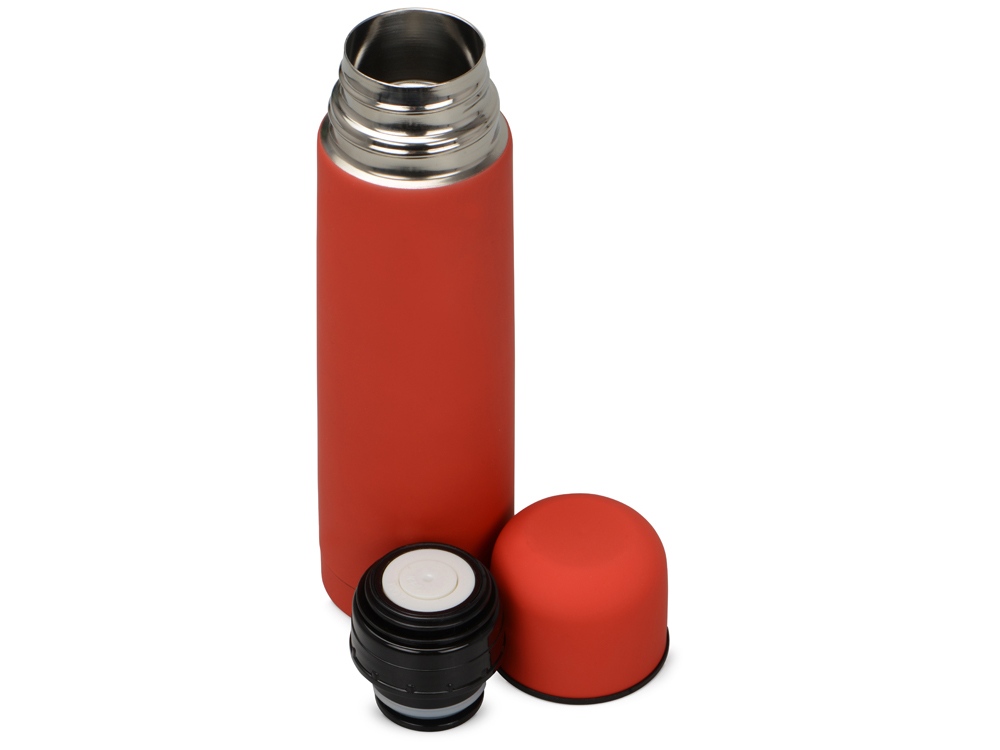 Универсальный термос с мягким прорезиненным покрытием софт-тач. Удобно и приятно держать в руке. Благодаря вакуумной изоляции и двойным стенкам сохраняет напитки горячими 24 часа. Герметичный клапан открывается и закрывается по легкому нажатию. Термос поставляется в дорожном чехле из искусственной кожи. Гравировка (CO2 лазер) (Без чернения) на данный товар осуществляется бесплатно. Оплачивается только настройка оборудования в размере 1000 рублей на весь тираж.