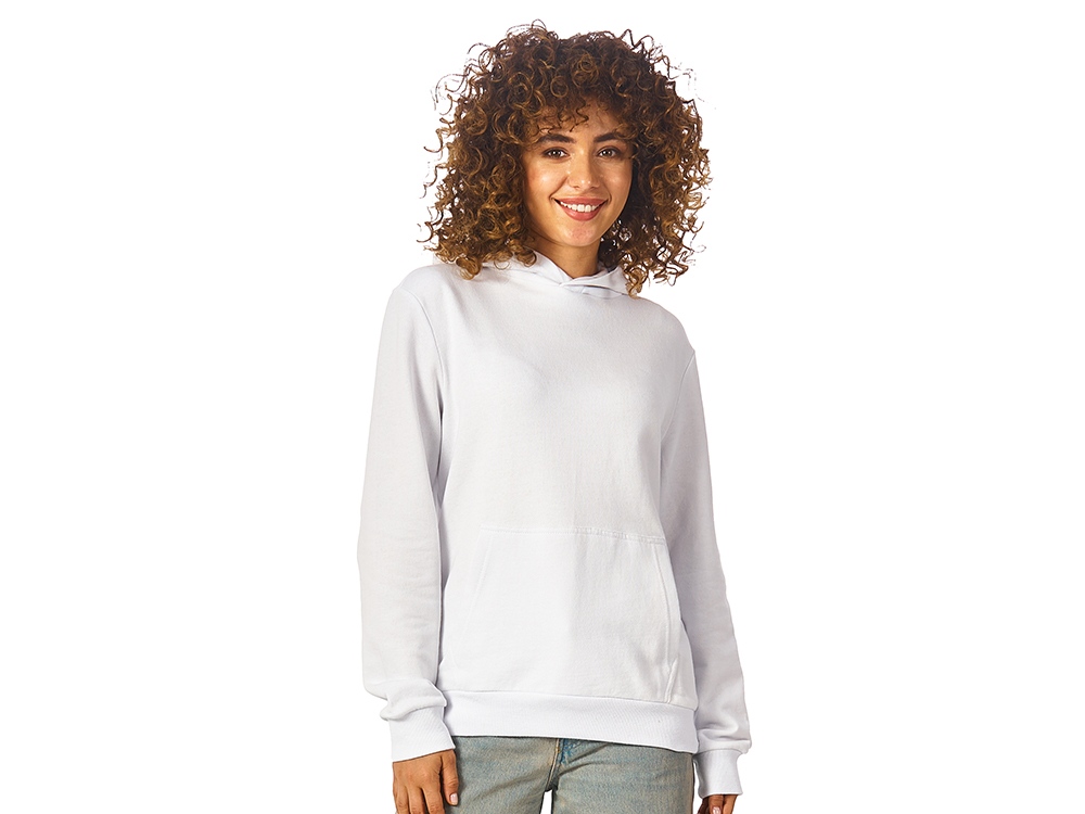 Толстовка с капюшоном (худи) из плотного хлопкового футера. В капюшоне подкладка в тон, а горловина спинки дополнительно укреплена тесьмой с выделкой «елочка». Капюшон без шнурков – ничего не отвлекает от вашего брендирования. Манжеты и низ изделия отделаны рибом 2х2. Глубокий комфортный карман кенгуру на полочке. Полотно из утяжеленного хлопкового футера внутри с петельками без начеса.