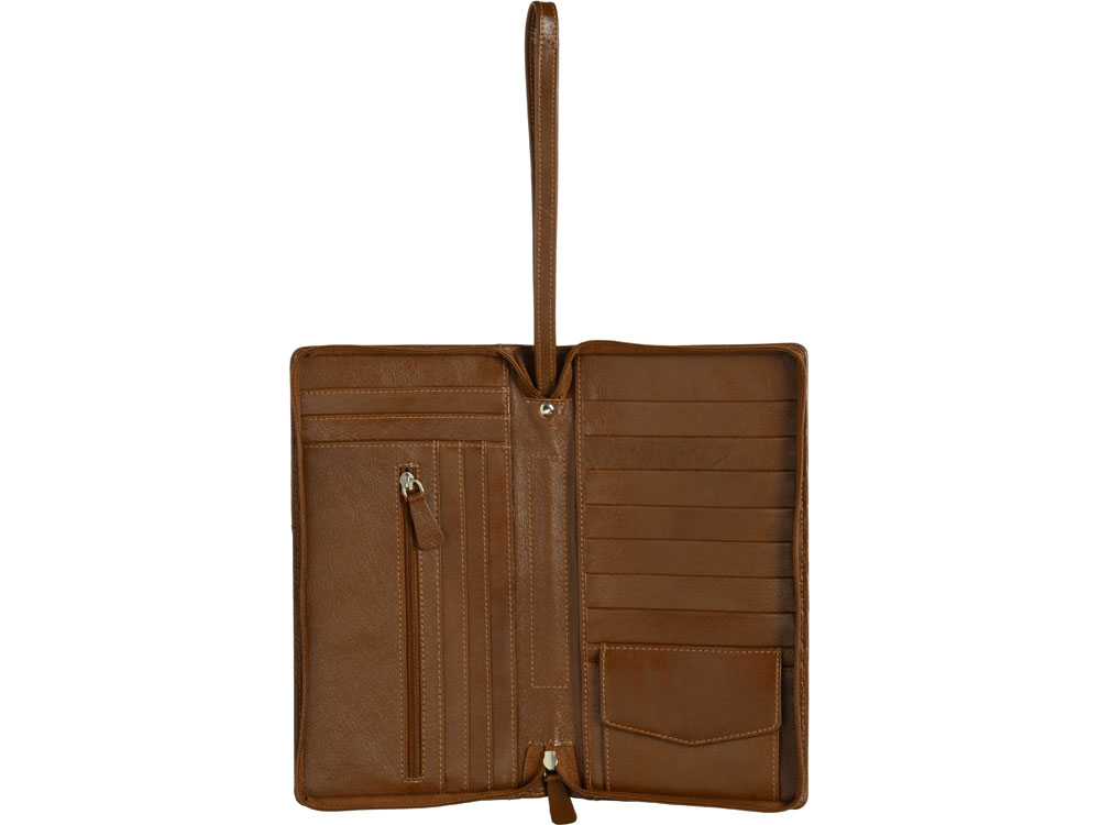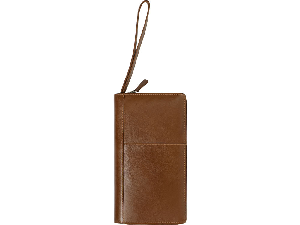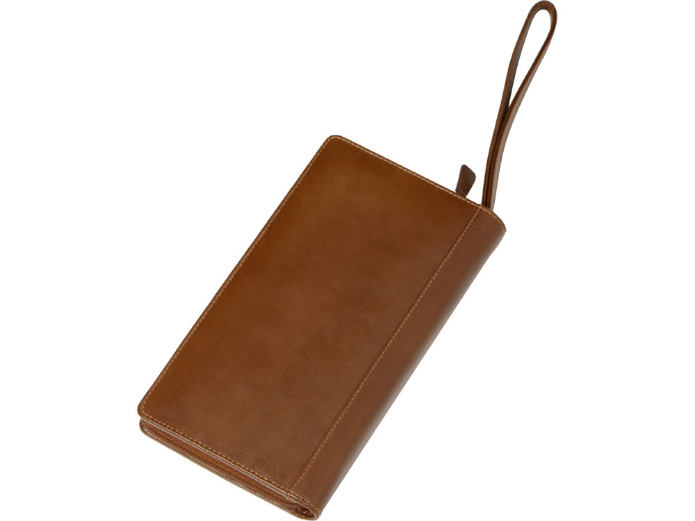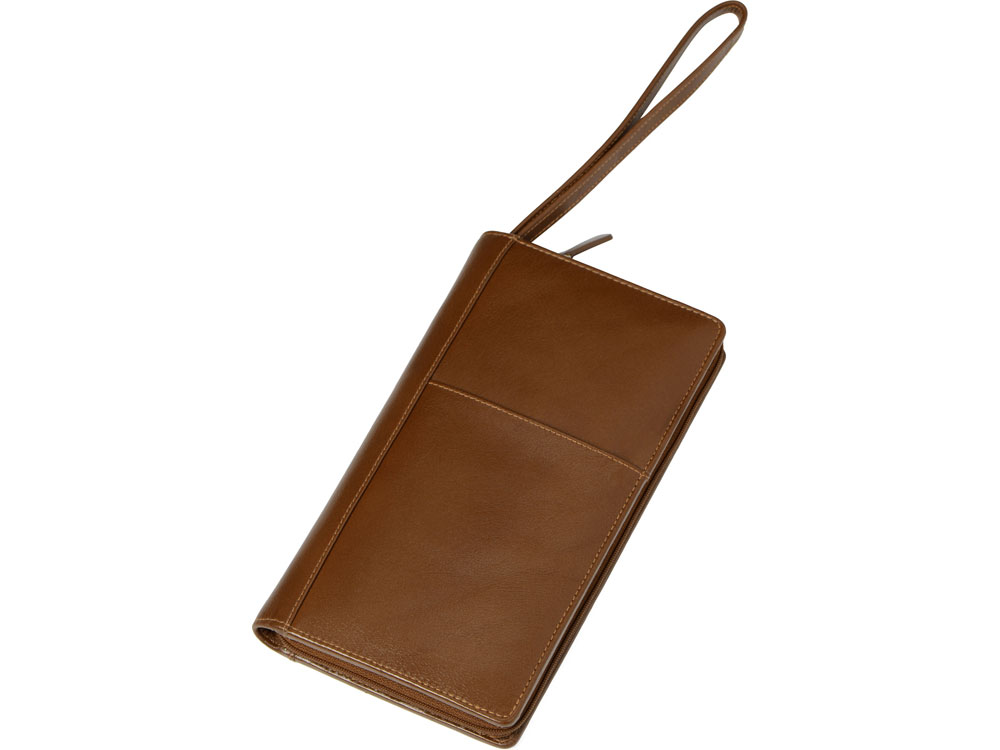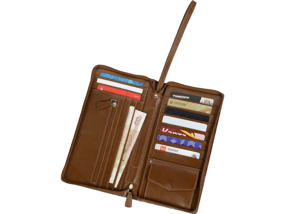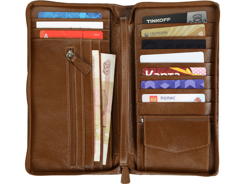 Стильное трэвел-портмоне из натуральной кожи позволить организоват хранение визитных и пластиковых карт. В портмоне предусмотрены карманы под купюры. Портмоне прекрасно подойдет для подарка женщинам и мужчинам. Тиснение (Блинт) на данный товар осуществляется бесплатно. Оплачивается только настройка оборудования в размере 6200 рублей на весь тираж.