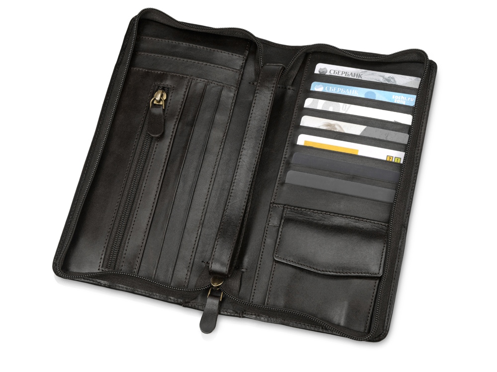 Стильное трэвел-портмоне из натуральной кожи позволить организовать хранение визитных и пластиковых карт. В портмоне предусмотрены карманы под купюры. Портмоне прекрасно подойдет для подарка женщинам и мужчинам. Два варианта расцветок. Тиснение (Блинт) на данный товар осуществляется бесплатно. Оплачивается только настройка оборудования в размере 6200 рублей на весь тираж.