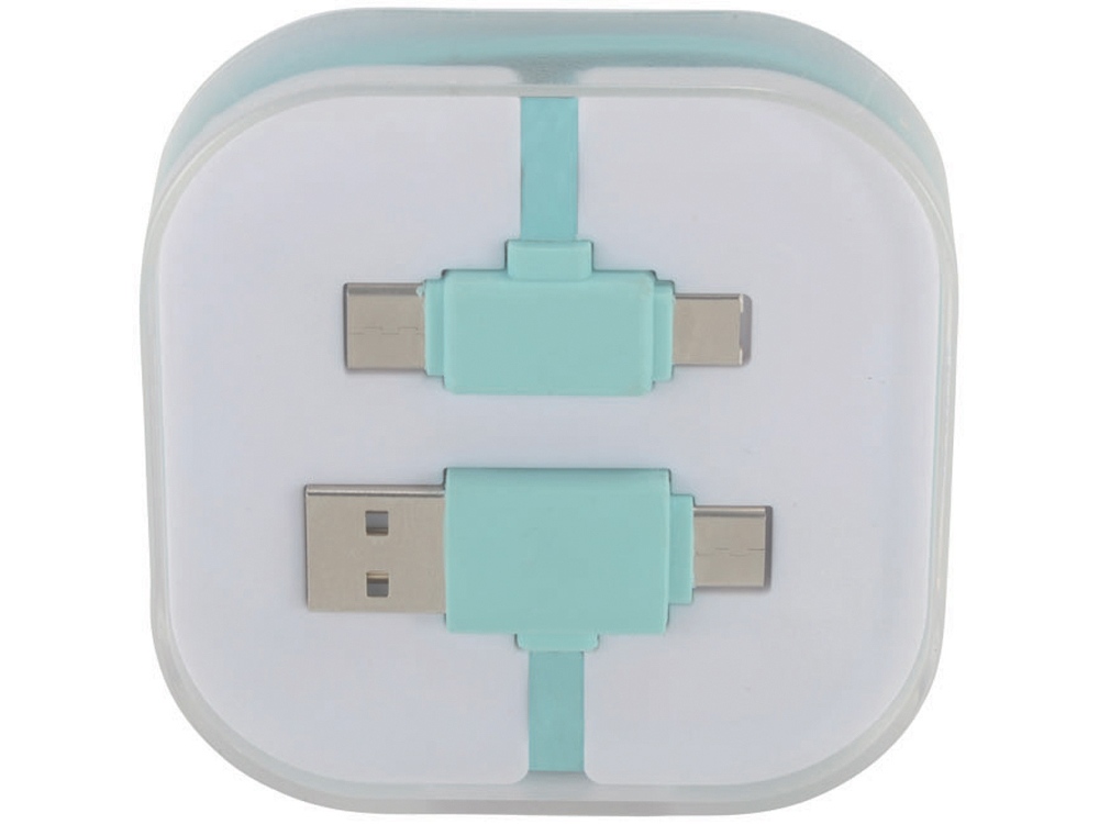Кабель для зарядки 4-в-1 двух типов C: 1 USB типа A и 2-в-1 двухконтактных наконечников для устройств Apple iOS и Android. Используются как зарядка, так и передача данных. Чтобы зарядить устройства Apple, поместите кабель стороной, у которой нет контактов в устройстве, чтобы зарядить устройства Android, поместите кабель со стороны, в которой есть контакты в устройстве. Тампопечать (1 цвет (цветные изделия)) на данный товар осуществляется бесплатно. Оплачивается только настройка оборудования в размере 4000 рублей на весь тираж.