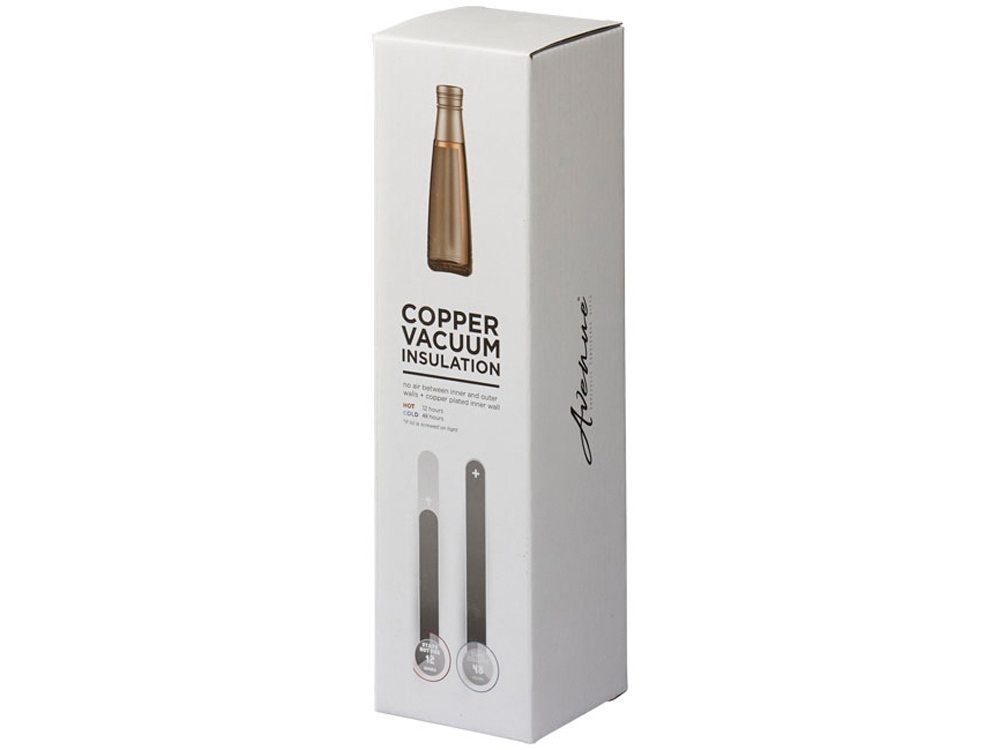 Вакуумная бутылка Duke с медным покрытием. Бутылка Duke изготовлена из нержавеющей стали (класс 18/8) с вакуумной изоляцией. Внутренняя стенка покрыта медью для достижения максимального сохранения температуры напитков: горячих до 12 часов и холодных- до 48 часов. Объем — 500 мл. Нержавеющая сталь. Гравировка (оптоволоконный лазер) (Без чернения) на данный товар осуществляется бесплатно. Оплачивается только настройка оборудования в размере 1000 рублей на весь тираж.