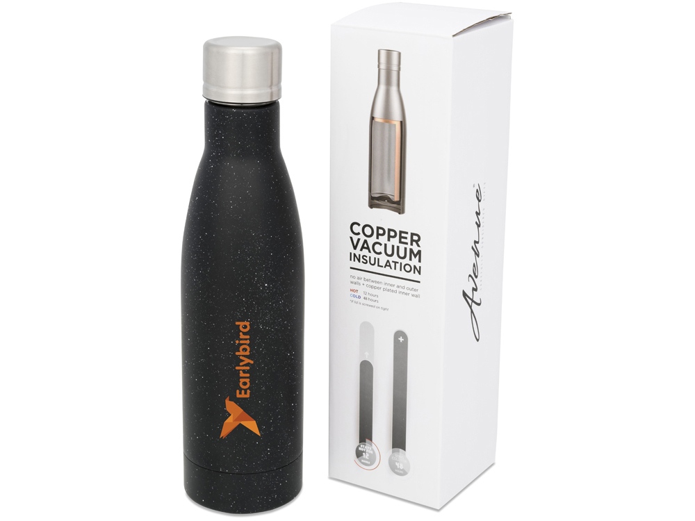 Бутылка Vasa в крапинку с вакуумной изоляцией, черный Гравировка (оптоволоконный лазер) (Без чернения) на данный товар осуществляется бесплатно. Оплачивается только настройка оборудования в размере 1000 рублей на весь тираж.