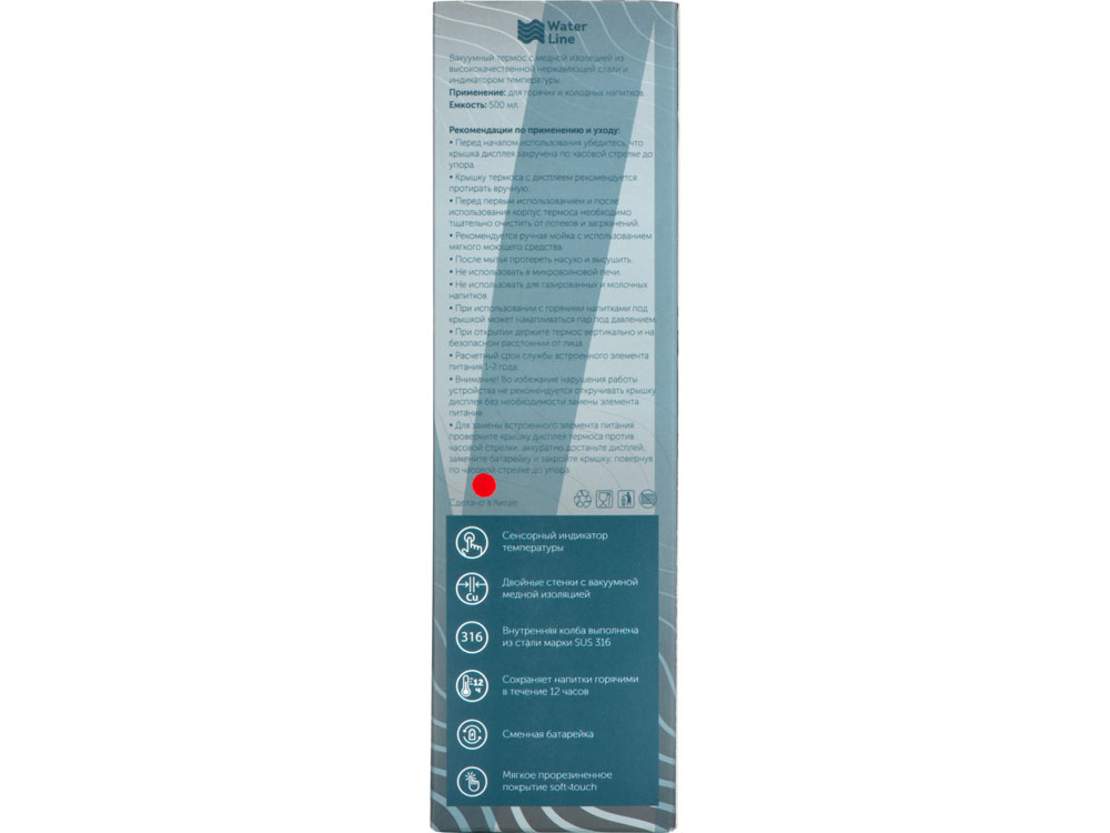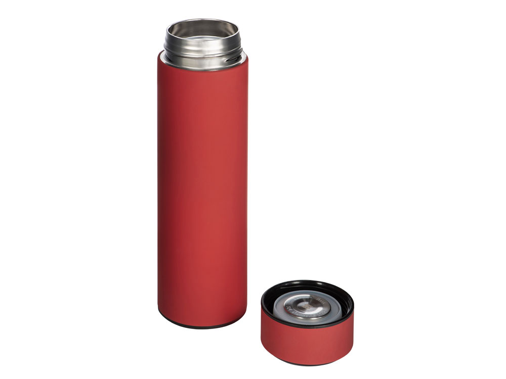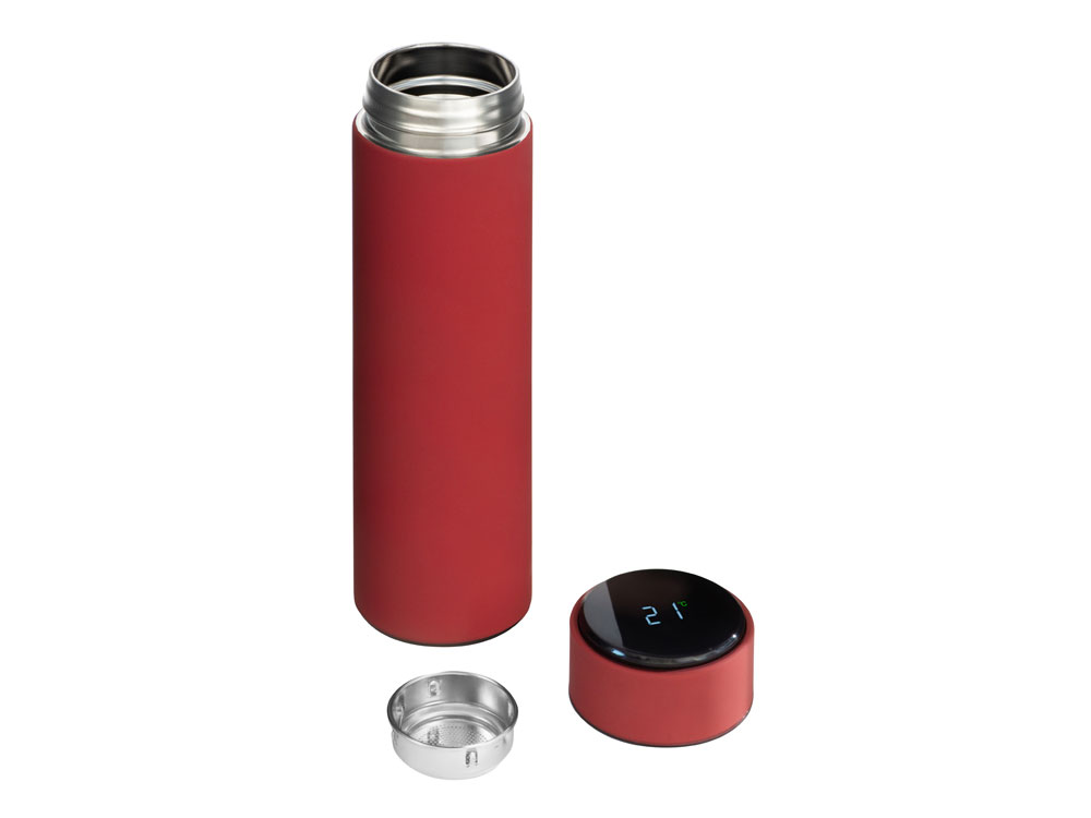 Вакуумный термос «Module X» не только сохраняет ваши напитки горячими, но и показывает, насколько они горячие! Уникальная особенность термоса — это сенсорный индикатор температуры, расположенный в крышке. Чтобы узнать температуру внутри термоса, достаточно прикоснуться к поверхности крышки. Батарейку CR2032 по истечении срока работы (1-2 года) можно заменить — для этого открутите верхнюю часть крышки против часовой стрелки и аккуратно поменяйте элемент питания.