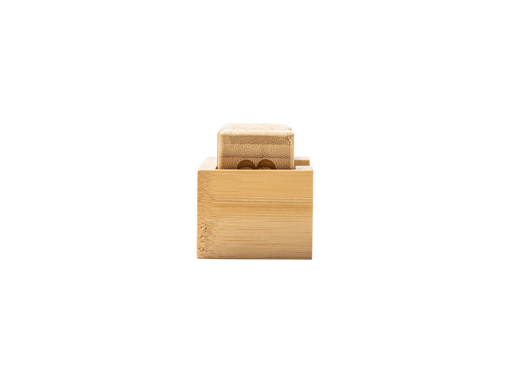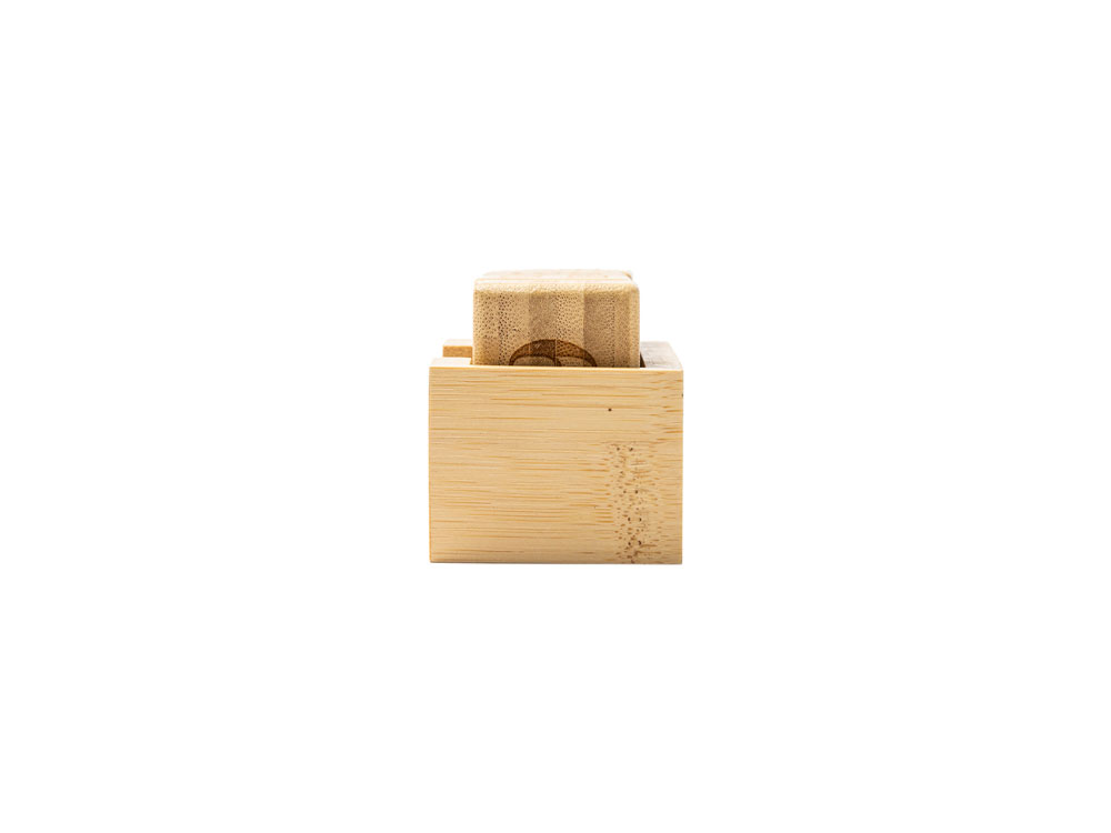 «Вечный» настольный календарь из бамбука, состоящий из одной подставки и четырех блоков с гравировкой.