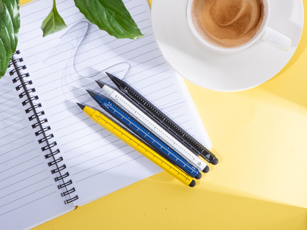 Карандаш изготовлен из переработанного алюминия. В отличие от обычных карандашей он не ломается, не пачкает руки, его не нужно точить.