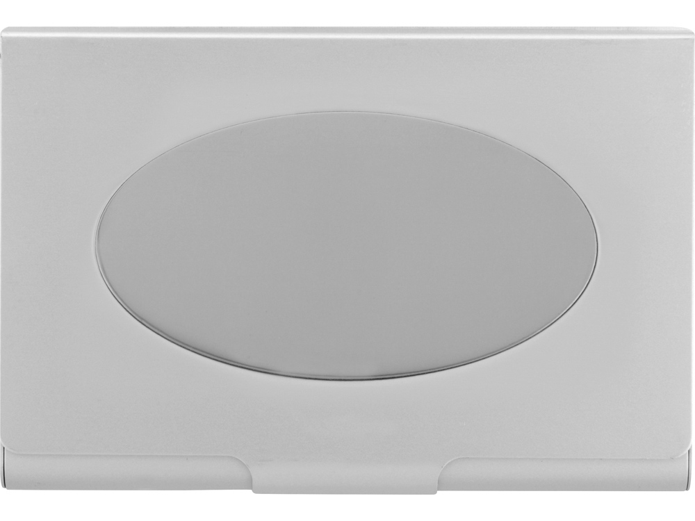 Отличный подарок или промо-сувенир по любому поводу. Визитница Dafna выполнена из серебристого металла. На крышке расположена овальная вставка, куда можно нанести глянцевое изображение или сделать гравировку. Гравировка (оптоволоконный лазер) (Без чернения) на данный товар осуществляется бесплатно. Оплачивается только настройка оборудования в размере 1000 рублей на весь тираж.