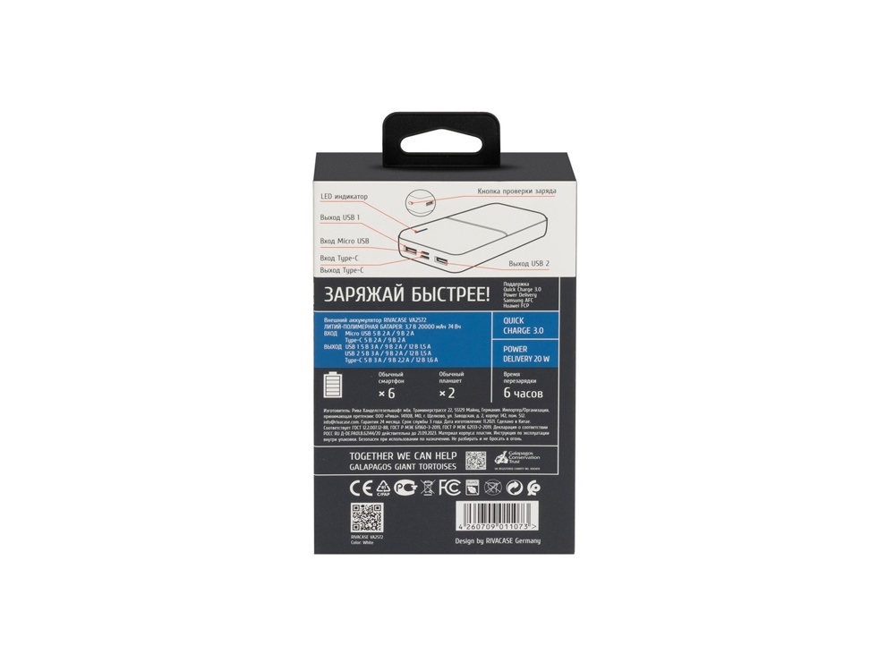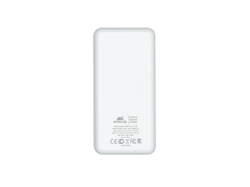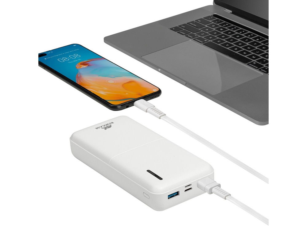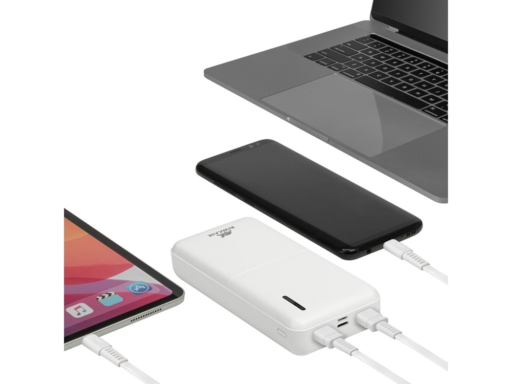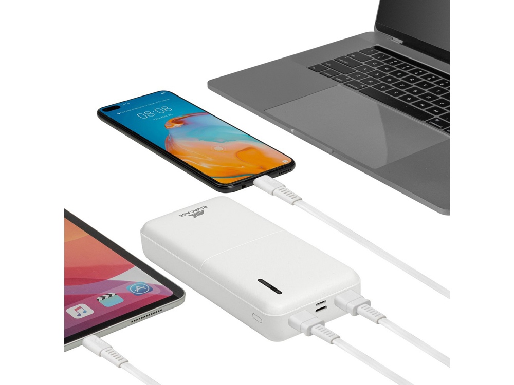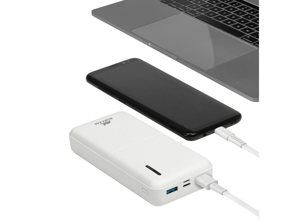 Литий-полимерный внешний аккумулятор емкостью 20000 мАч с поддержкой QC 3.0 и PD 20W. Быстрая зарядка iPhone. Поддержка режима быстрой зарядки Quick Charge (QC 3.0) и Power Delivery 20W (PD). Поддержка режимов быстрой зарядки Huawei FCP и Samsung AFC. Защита от перегрузок, короткого замыкания, чрезмерного заряда и разряда. Наличие дополнительного входа/выхода Type-C, поддерживающего режим Power Delivery. Кабель USB — Type-C в комплекте. Функция сквозного заряда: Можно одновременно заряжать внешний аккумулятор и подключенное к нему устройство. Время перезарядки внешнего аккумулятора: 6 часов (при использовании QC/PD зарядки). Емкости достаточно для 6 зарядок среднего смартфона. Подзарядка ноутбуков по разъему Type-C Тампопечать (1 цвет (белые изделия)) на данный товар осуществляется бесплатно. Оплачивается только настройка оборудования в размере 4000 рублей на весь тираж.