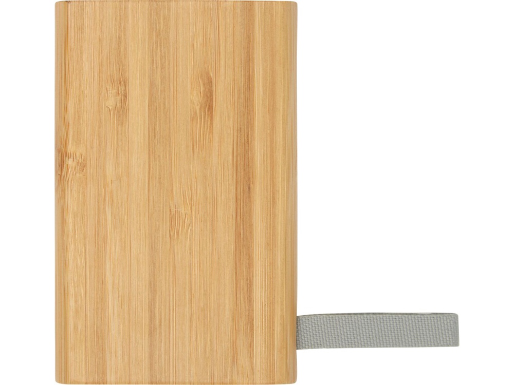 Бамбуковое портативное зарядное устройство с резервным питанием 5000 мАч для мобильных телефонов или других цифровых устройств. Имеет светодиодные индикаторные фонари и перемычки из переработанного ПЭТ. В комплект входит кабель Micro-USB для зарядки. Поставляется в подарочной упаковке, которая на 100 % сертифицирована FSC. В комплекте содержится инструкция, выполненная по стандарту FSC. Поскольку бамбук — природный материал, цвет и размер сырья могут быть разными, что, в свою очередь, может повлиять на итоговый вид отделки.