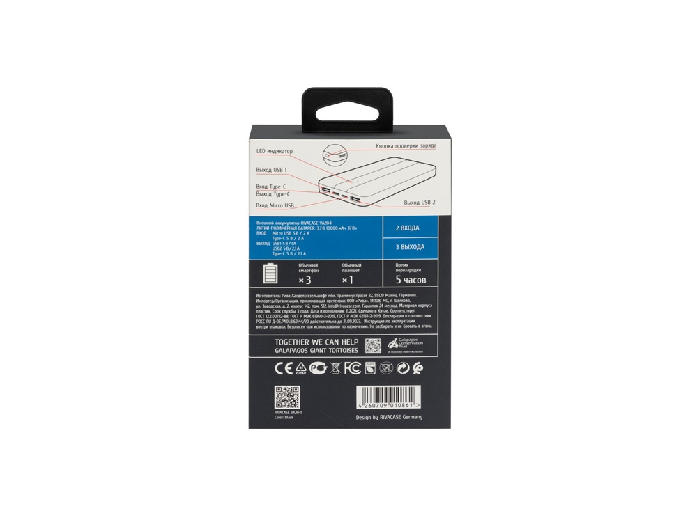 | Входные параметры | micro USB- 5V-2A, Type C- 5V-2A |