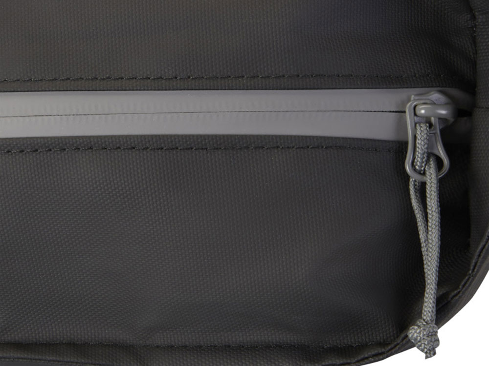 Водонепроницаемая эко-сумка для ноутбука, изготовленная из переработанных материалов согласно стандарту GRS, включая молнии. Имеет специальное отделение для планшета, отделение для ноутбука с диагональю экрана 14 дюймов, несколько карманов для хранения разных предметов, передний карман с органайзером, регулируемые ручки длиной 35 см и ремешок для багажа. Из переработанных материалов, сертифицированных по стандарту GRS, изготовлены основная ткань, подкладка, лямки и застежки-молнии. Емкость: 14 литров. Не содержит ПВХ.