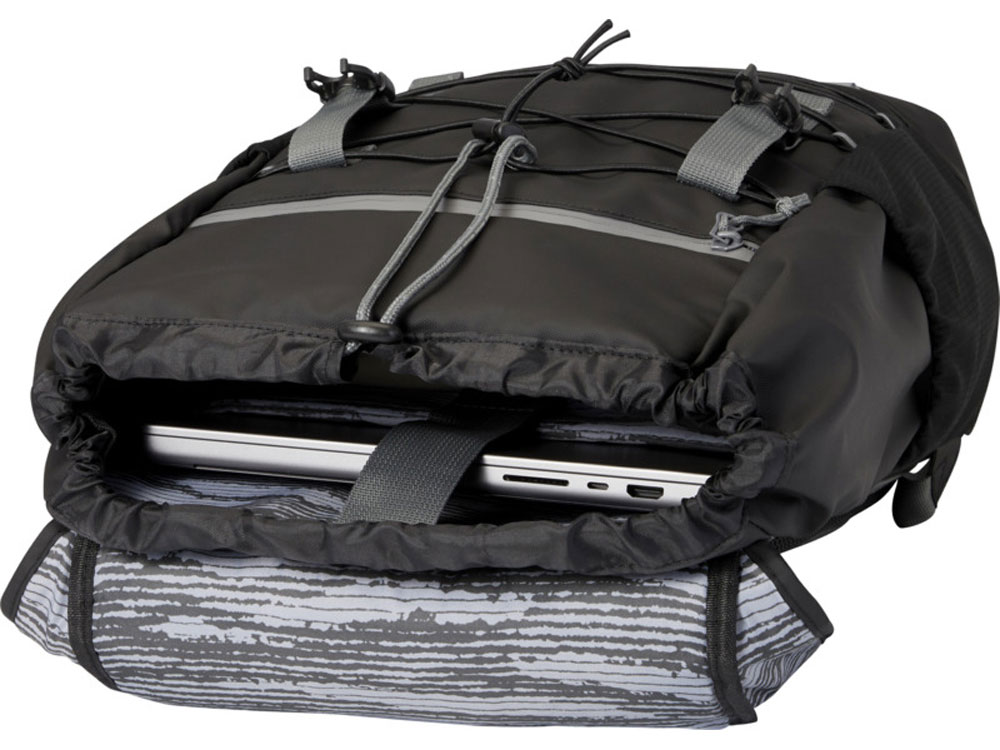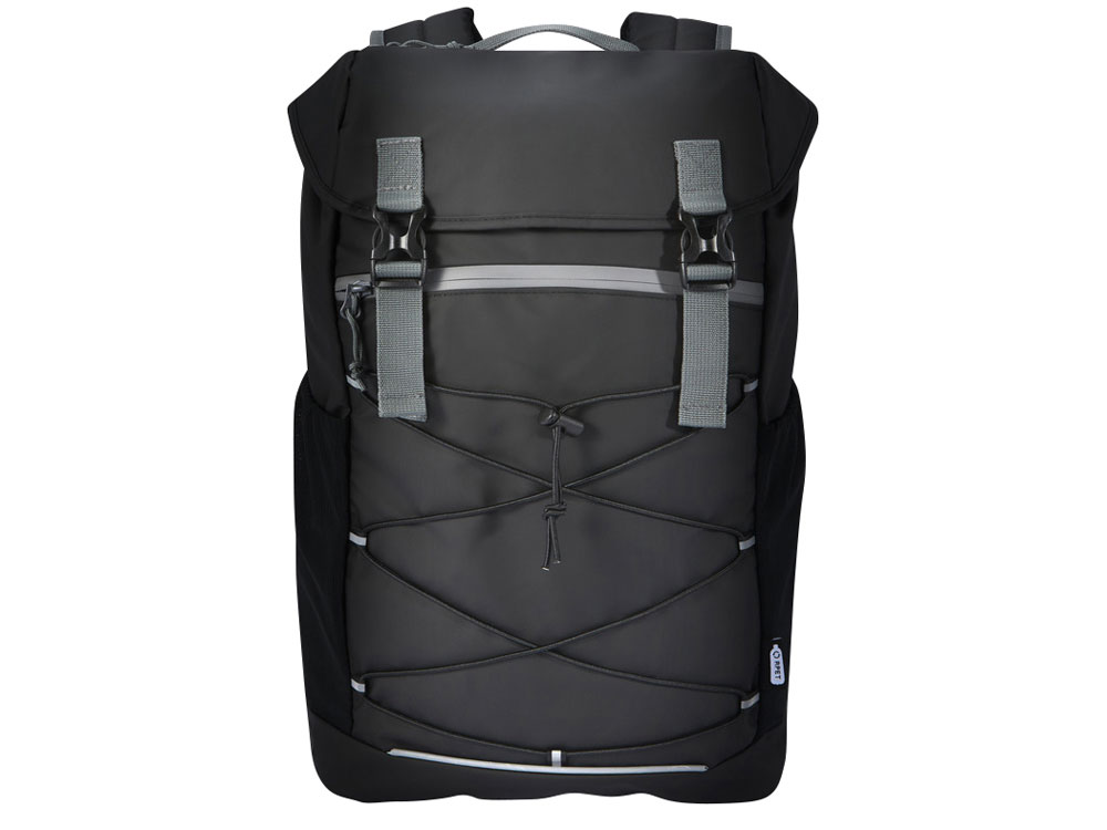 Водонепроницаемый рюкзак для ноутбука, изготовленный из переработанных материалов, сертифицированных согласно стандарту GRS, включая застежки-молнии. Имеет просторное отделение для ноутбука с диагональю экрана 15,6 дюйма со шнуром, а также регулируемые пряжки, чтобы максимально увеличить пространство для хранения под откидной крышкой. Этот рюкзак имеет несколько карманов, в том числе передний карман на молнии с эластичными кулисками для хранения и организации, а также светоотражающую окантовку для видимости. Формованная мягкая спинка и регулируемый нагрудный ремень обеспечивают комфорт даже тогда, когда рюкзак полностью загружен. Из переработанных материалов, сертифицированных по стандарту GRS, изготовлены основная ткань, подкладка, лямки и застежки-молнии. Емкость: 23 литра. Не содержит ПВХ.
