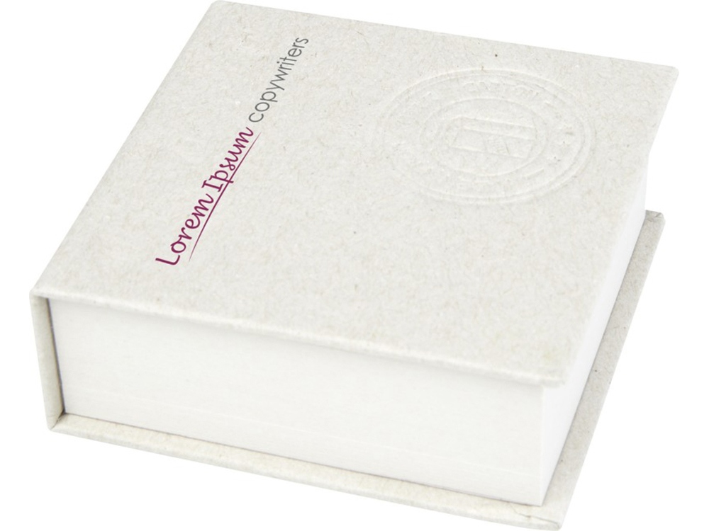 Записная книжка с пустыми листами плотностью 200 г/м² из переработанных картонных коробок из-под молока (до 70%). Картонные коробки из-под молока собираются, сортируются, перерабатываются и превращаются в бумагу, таким образом действительно превращая мусор во что-то полезное.