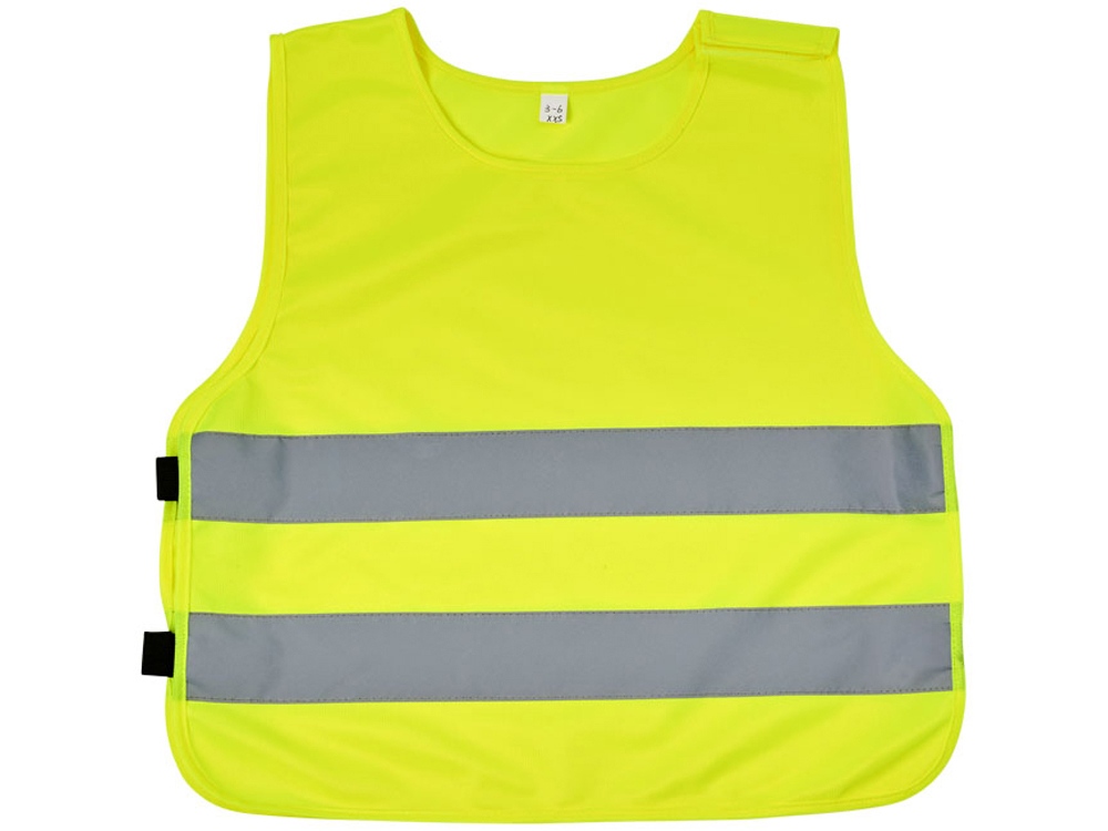 Защитный жилет Marie на «липучке» для детей 7-12 лет. Сигнальный аварийный жилет размером XS подходит для детей в возрасте 7-12 лет, ростом 104-121 см. Большая зона для декорирования спереди и сзади жилета. На плечах и нижних эластичных лентах имеются застежки на «липучке», которые обеспечивают дополнительную безопасность и облегчают надевание жилета. С другой стороны эластичные ленты могут растягиваться, что позволяет легко надевать жилет на толстый шар одежды. Аварийный жилет протестирован и сертифицирован в соответствии с нормативами EN 1150:199. Полиэстер.