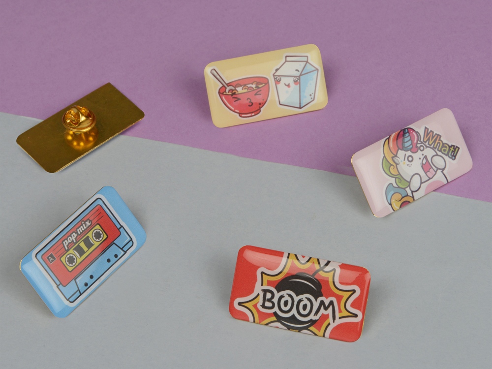 Металлический значок «Прямоугольник» станет отличным промо-сувениром, благодаря своей прочности и долговечности. Он идеально подойдет в качестве раздаточного материала на деловых мероприятиях и рекламных акциях, а также будет прекрасно смотреться на рюкзаке, сумке и других предметах одежды. Фирменный стиль бренда легко подчеркнуть с помощью нанесения — заливки смолой. На поверхность сувенира можно нанести любое изображение, слоган или логотип компании. Значок имеет 1 цангу для крепления. Заливка полимерной смолой (Смола на значках) на данный товар осуществляется бесплатно. Оплачивается только настройка оборудования в размере 3000 рублей на весь тираж.