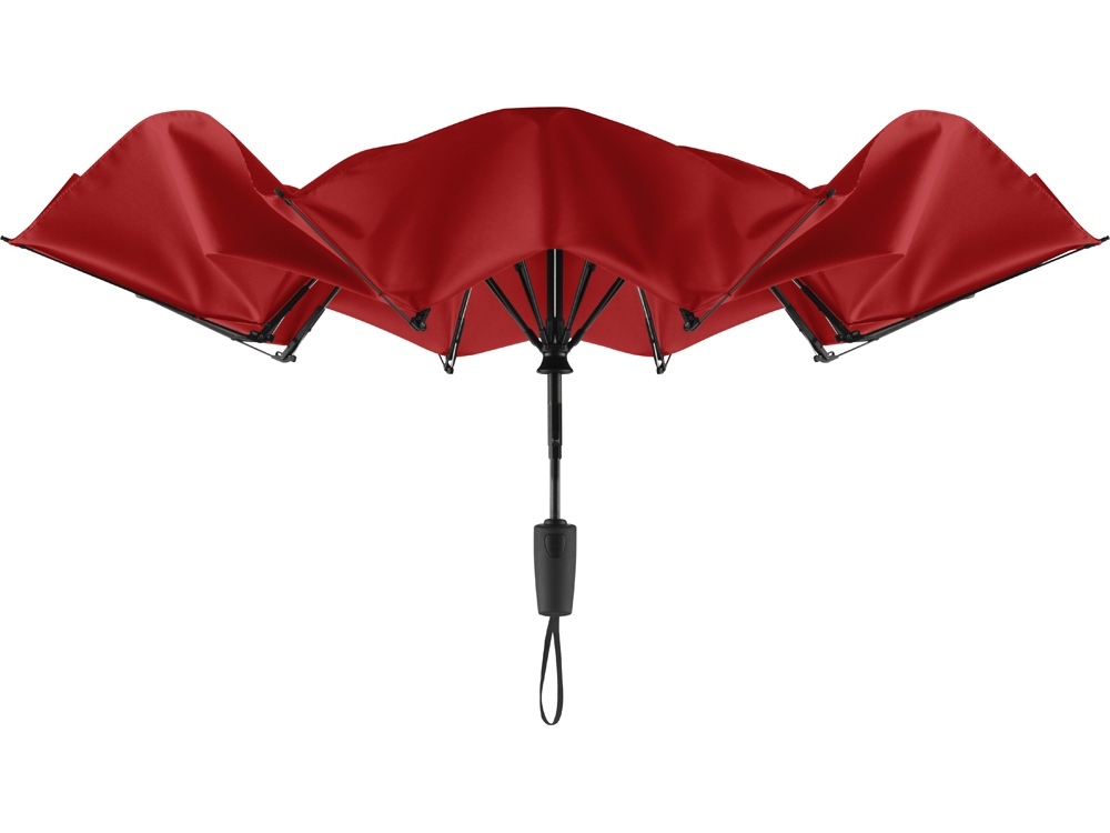 Современный зонт-полуавтомат с обратным сложением внутрь. Очень удобен в использовании, например, во время посадки в машину при складывании зонта вода остается внутри купола. Открывается с помощью кнопки на ручке из мягкого пластика.