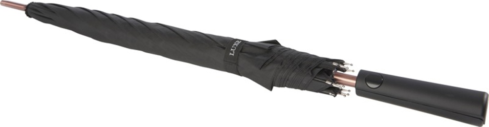 Зонт с механизмом автоматического открытия и куполом из полиэстера (эпонж). Прочный алюминиевый шток и верхняя часть с модной отделкой цвета серебра или розового золота. Высококачественная цельная рама из стекловолокна обеспечивает в ветреную погоду максимальную гибкость. Прямая ручка с мягким покрытием Soft Touch и черные никелированные наконечники. Тканые ярлыки с фирменными деталями Luxe на куполе и застегивающемся ремешке. Большая зона для декорирования на каждой панели купола. Полиэстер Эпонж.