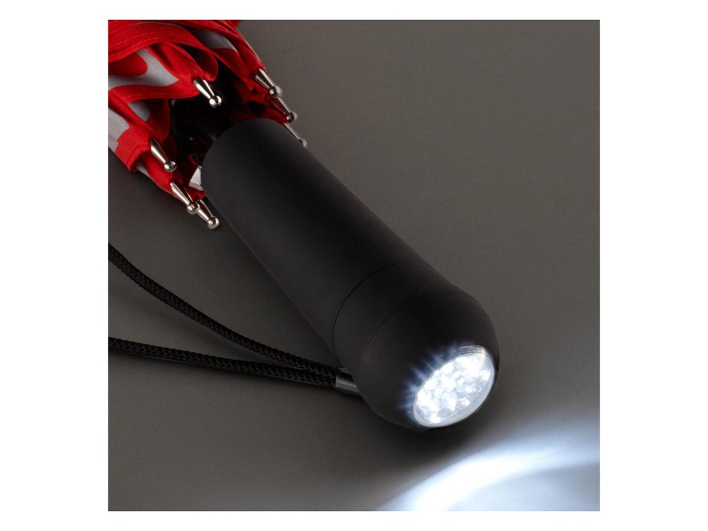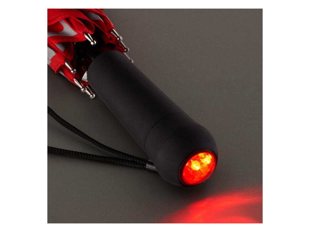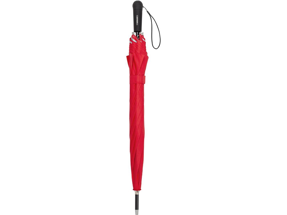 Полуавтоматический зонт-трость со светоотражающими элементами на куполе из запатентованного материала 3M™ Scotchlite™ обеспечит дополнительную защиту в темное время суток. В ручку встроен LED фонарик, который работает в двух режимах — постоянный белый свет и мерцающий красный. Батарейка в комплекте. Трафаретная печать (1 цвет (цветные изделия)) на данный товар осуществляется бесплатно. Оплачивается только настройка оборудования в размере 8700 рублей на весь тираж.